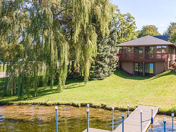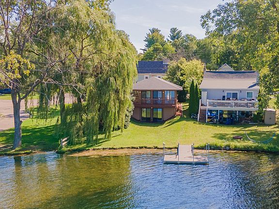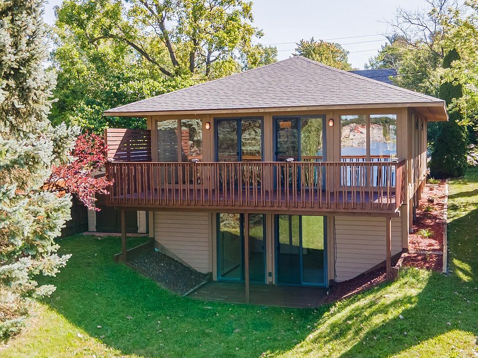 Experience lakeside living in this stunning custom-built home, perfectly positioned on Park Lake with 40 feet of pristine frontage. With 1,728 sq ft of thoughtfully designed living space and a new roof, this home is move-in ready. Enjoy breathtaking views through the floor-to-ceiling windows that bathe the living spaces in natural light. The interior features beautiful wood vaulted ceilings, creating an inviting atmosphere throughout. This Japanese-inspired retreat boasts two master bedrooms, each with attached full baths, including heated flooring in the lower master bath for added comfort. The walk-out lower level seamlessly connects to outdoor living, perfect for entertaining or simply soaking in the tranquil surroundings. The attached two-car garage offers convenience, while the fully mature pear tree adds a touch of charm to the property. Located adjacent to two parks and just a short distance to the beach and ice cream shop, this home is a perfect blend of relaxation and recreation. Relax on the deck and enjoy stunning sunsets, making this lakeside haven truly one-of-a-kind.