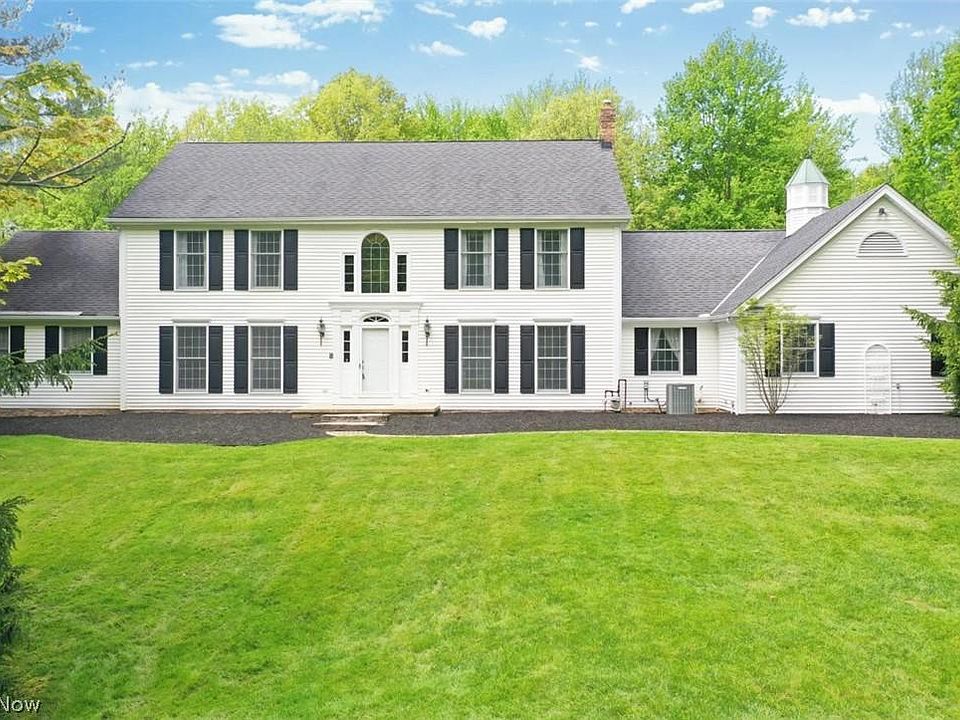 Best of All Worlds! Russell Township, Chagrin Falls Schools in Geauga County equals No RITA Tax. Stately Conventional Home w/4238 Square Ft plus additional 2000 SF Walk Out Lower Level All on Your Own Serene Private 5.03 Acres yet only 1.5 miles from the Center of Historic Downtown Chagrin Falls. Your Own Retreat w/Professionally Maintained Yard, Pond & Circular Driveway Surrounded by Gorgeous Natural Scenery. Traditional Grand 2 Story Foyer leads up to Large Open Loft Above. Granite Kitchen w/Large Island, Vaulted Ceiling, Skylight, Stainless Steel Appliances, Sub Zero Fridge, Cabinets Galore. 16 x 16 Informal HDWD Flr. Dining Rm w/Huge Pantry Open to Vaulted Family Rm w/FP, Built Ins, HDWD Flr, & Beautiful Scenic Views to Large Deck & Backyard. Entertain in the Formal Dining Rm or Formal Living Rm Both w/Crown Molding. So much Natural Light in Heated Spacious Sun Room. Executive 1st Flr Office (or 6th Bdrm) w/HDWD Flr, Closet & Plentiful Built Ins. Vaulted 1st Flr Master Suite, Velux Auto Sunscreen Blinds in Skylight, Double Walk Ins, Glamour Bath. Temperature Controlled Green House off Kitchen for all Your Home Grown Herbs & Vegetables, 1st Flr Laundry & 2 Half Baths Complete the 1st Level. 4 Spacious Bdrms on 2nd Flr. All w/Ample Closet Space Plus 2 Additional Full Baths. Rec Rm on LL Plus 42 x 28 Walk Out Area Ready for Your Creation. (Previously a Wood Shop) Additional Storage Room (Wine Wall Stays). Attached 3 Car Garage. No Worries Home Warranty Included!