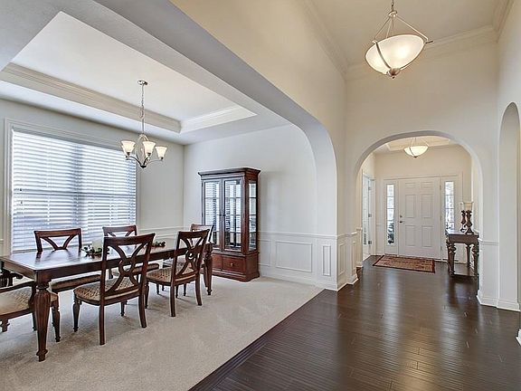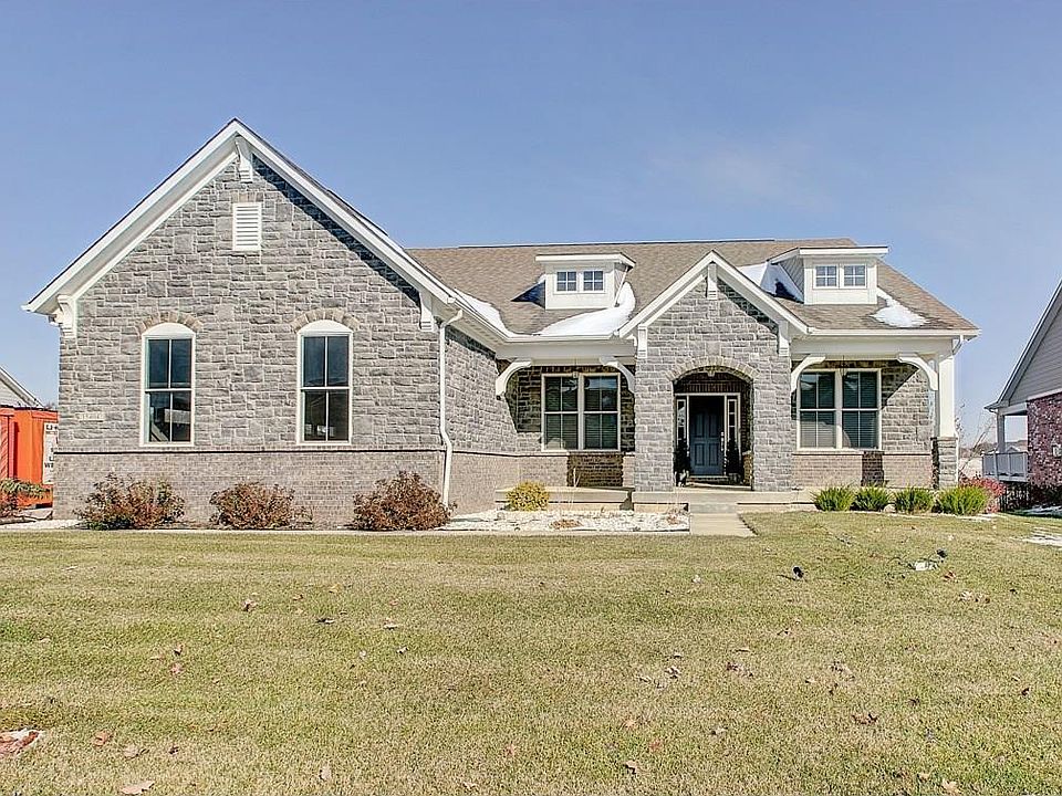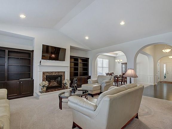 Popular Driftwood floorplan! 4 bed/3.5 bath Ranch, Features include but not limited to: Open concept ranch w/ several custom finishes incl cath, coffered & trey ceilings, Wainscoting, gas fireplace w/ built-in bookshelves, arched interior, Chef's dream kitchen includes built in dbl oven, Electric cooktop, tile backsplash, ss appliances, and granite countertops! Open staircase w/ spindles leading to spacious 2500 sq ft WALK_OUT BSMNT! Bsmnt incls large open rec area, wet bar, bedroom, full bath, and large unfinished areas perfect for storage. finished 3rd car garage. master bath w/ oversized executive mstr tile shower, raised dbl vanity, rear sitting deck with pond lot view. This home has it all! Location, location, location!