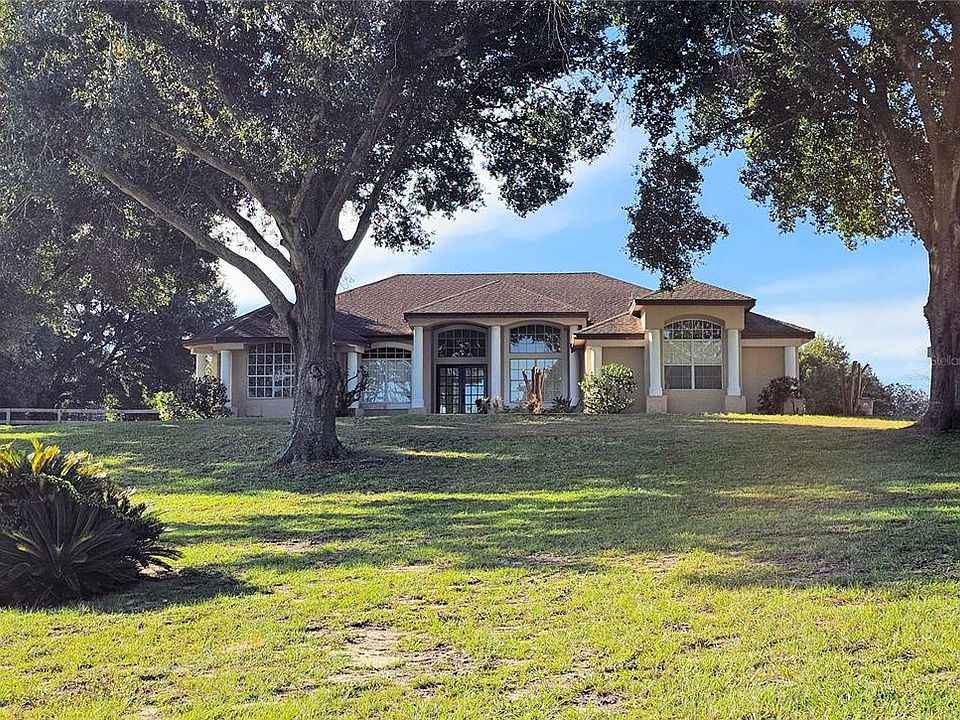 A rare opportunity to rent this 4 Bedroom, 3 Bath home nestled on a beautiful 2.5-acre lot in the sought-after community of Montverde. This property offers both privacy and space, surrounded by mature trees and peaceful surroundings, yet just minutes to Montverde Academy, shopping, and major highways. Step through the double glass entry doors into the welcoming Foyer, opening to a Formal Living Room with French Doors leading to the Lanai perfect for indoor-outdoor entertaining. To the right of the Foyer is a Formal Dining Room, ideal for hosting gatherings. The home features 12-foot ceilings throughout, enhancing the spacious, airy feel. The Family Room is the heart of the home, complete with a wood-burning fireplace, built-in shelving and cabinetry, and sliders opening to the Lanai. Recent updates include new luxury vinyl flooring in the main living areas and bedrooms, adding modern style and durability. The Primary Bedroom Suite is generously sized, offering plenty of space for a sitting area or reading nook. The Primary Bath includes dual sinks, a jetted garden tub, and ample storage. A separate hallway leads to the 3rd and 4th bedrooms, which share a full bath and can be closed off for privacy, making it perfect for guests or multi-generational living. With its expansive acreage, elegant design, and flexible layout, this Montverde home offers the perfect blend of comfort, function, and tranquility a true must-see property!