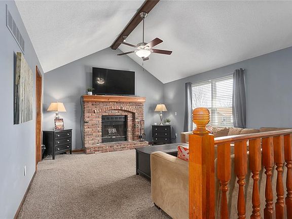 The quiet and friendly cul-de-sac street in the Olathe School District just adds to this delightful home! The family room gives airiness with the vaulted ceiling, plenty of natural light, and a charming brick fireplace . The kitchen has stainless steel appliances with ample counterspace but also space for a small breakfast table. From the kitchen, head out the newer doors (with internal blinds!) to the spacious fenced backyard. Newer, durable, wood-look laminate flooring in the large dining room gives you the perfect space to host family dinners or entertaining. Down the hall you will find plenty of closet storage, the updated hall bathroom, and bedrooms. The master bedroom has his/her closets but also another beautifully updated bathroom! Head to the basement where you have more space for family to spread out or to entertain for games! With newer windows, newer interior paint, 1 year old HVAC, over-sized garage, and impeccable location, this one is a must see! Professional photos taken on the 6th and will be uploaded by Noon on the 7th.