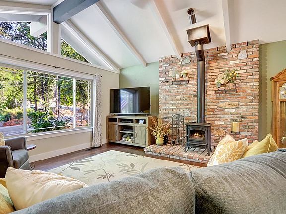 The best of Alta Sierra! This amazing home has been lovingly cared for and shows impeccable taste. Living room has high open ceilings, brick fireplace with insert, engineered wood floors, and amazing views of the pines. The remodeled kitchen features granite, gorgeous 2 tone cabinets, a pantry and a movable island. From the kitchen sink you can gaze at the exceptional beauty of the yard, the pines and all the reasons you live in the foothills! Master bedroom has an enormous walk- in closet. Sliding glass door from master and dining room will take you to your treehouse' deck. It sits high over the yard and gives you a sense of being in the trees.The covered winter deck has bbq, kitchen area with refrigerator and granite counters. The yard is a work of art, with meandering paths, rose garden, lawn and mature plants and trees. You can just feel the love and time that it took to make this easy to care for garden oasis. Room for RV and garage has loft storage.