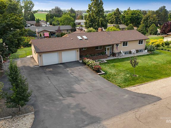Large beautiful well kept home in an established tree lined subdivision with no HOA's. Minutes from Lake Lowell. You can choose to either spend your summer evenings on the beautiful large 490 sqft deck overlooking your large private yard or out front on your large extended paver porch area. Relax in the Hot Tub on those cool fall evenings. This home has it all, plenty of room for your RV and toys, 5 bedrooms, office, great room, large pantry storage for all your canning needs, new quartz counters. Large Daylight basement. Easy freeway access yet outside city limits, close to shopping, dining and Caldwell's Indian Creek Plaza. Come take a look today! Hot Tub, trampoline and play set are negotiable.
