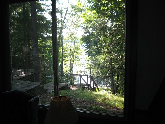 Summer cottage or year-round home overlooking scenic Maiden Lake. Panoramic views from kitchen, dinette, living room and deck. Could be converted back to 2 bedrooms. Include two garages and huge open pole building, paved lot and all on nearly 1/2 acre lot. Needs a little TLC but priced to sell!