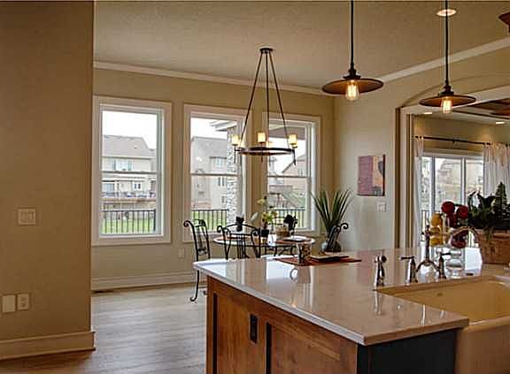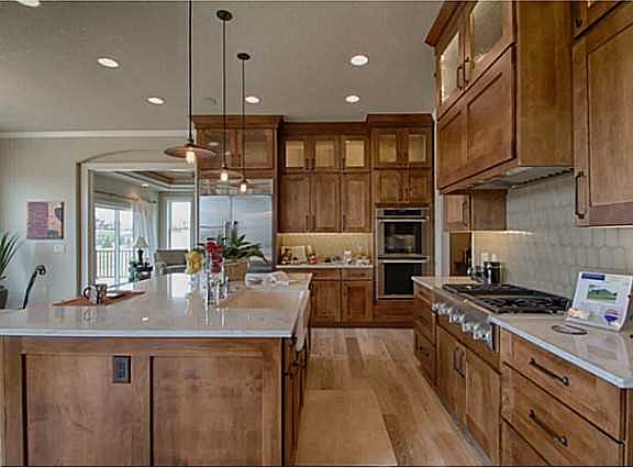 This top quality walkout ranch by Barnett Construction has a large side load garage giving the front elevation much more appeal. The spacious and open main floor has abundant natural light from the oversized windows. The 10' ceilings w/extended trays, vaults & unique wood inlaid barrel ceiling adds to the openness. The great room is lg w/stone FP & built-ins, and flows into the gourmet kitchen w/huge center island, high end appliances, birch soft close cabinets, big pantry w/butlers desk & over/under cabinet lighting. There is a large laundry room with sink and cabinets, a mudroom with lockers, seats & closet between kitchen and garage. Off the dining area is a lg den/4 season room w/another FP & leads onto the covered deck with stone flooring. The sunken family room is the focal point of the walkout level. There is also a wet bar with frig, microwave & dishwasher, a game room, exercise room, hidden wine cellar, big storage rm w/big door to back yard & 2 BR's w/full bath plus 1/2 bath.