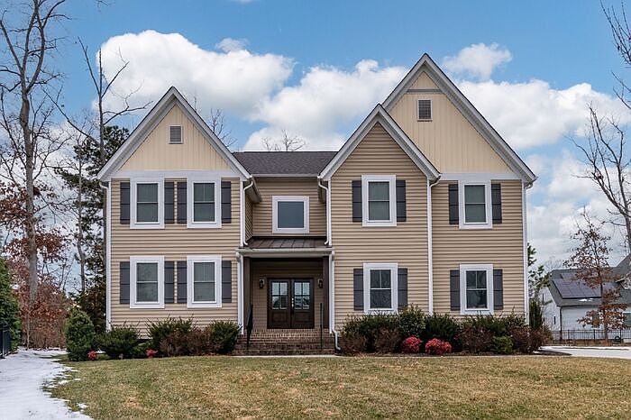 Discover the perfect blend of comfort and style in this stunning 5-bedroom, 3.5-bath home located in the desirable Newmarket Village at RounTrey. Built in 2020, this home offers a modern design with thoughtful details throughout. The exterior features charming curb appeal, complete with a tin front porch roof and board & batten accents, while the private backyard and deck create an ideal space for outdoor entertaining and summer barbecues. Step inside to find a beautifully designed interior with custom touches that make this home stand out. The kitchen is a chef's dream, featuring granite countertops, stainless steel appliances, a pot filler above the stove, and a butler's pantry complete with a wine cooler and sink. Additional highlights include custom molding, a wet bar, and a mudroom with built-ins. Upstairs, the spacious primary suite boasts a luxurious ensuite bath and walk-in closet, complemented by four additional bedrooms, two full baths, and a convenient laundry room. Located in a vibrant community with access to amenities such as pools, walking trails, and playgrounds, this home is just minutes from local dining, shopping, and major highways. Don't miss the opportunity to call this incredible property your next home! Contact us to schedule a showing.