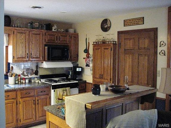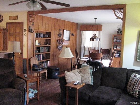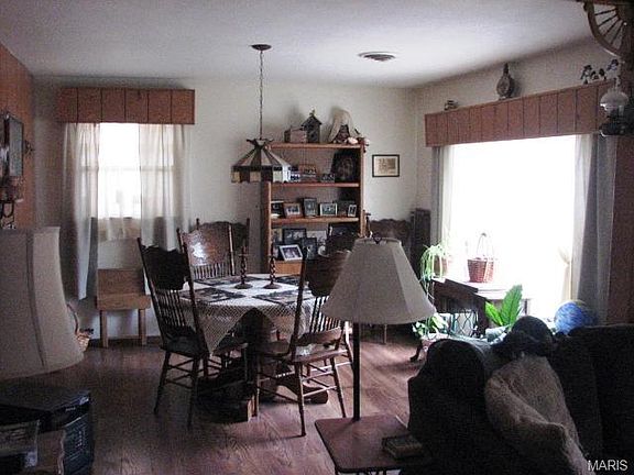 Home is nestled back off the road in park like setting. Kitchen open to living & dining rms, custom cabinets, center island & tile-look vinyl flooring. Dining rm has wood-look laminate flooring, large window & built in shelving. Living rm has cozy gas fireplace & wood-look laminate floor. Master bedroom with walk-in closet & sink plus a door leading out to sun rm. (Sun rm was originally intended for a hot tub) Sun rm has 1/2 vault & rustic wood trim. One of the guest rooms has access to the sun rm. There is a mud rm great for taking off dirty boots, shoes, coats, etc. & is big enough to have extra storage or work area. Outbldgs include an implement shed, mechanic shed, wood shop with 1 car garage and spacious loft that could be an office & a smaller red metal barn with 2 open stalls and tact room. 12'x10' m/l screened-in porch outside back door. Nice large field in front of property and 5 acres m/l wooded in back. Seller states there is an artisan well. 250gal propane tank is owned.