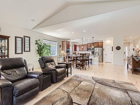 Welcome to the highly desirable Heritage Todd Creek community. This is a 55+ golf course community. This open floorplan home is immaculate. Entering the foyer, to your left are two nice size bedrooms, or, office space should you prefer, and the main level laundry room including washer and dryer. To your right is the entrance from the spacious 3-car garage. Straight ahead, the gourmet kitchen boasts of abundant, rich cherry cabinetry, beautiful granite counters, a pantry and stainless appliances including a 5-burner gas cooktop with downdraft venting, double ovens, double door refrigerator and microwave. There is a center island with ample room for countertop dining. For formal dining, enjoy the large, open dining room. The living room boasts a gas fireplace, vaulted ceiling and in-wall and in-ceiling speaker system. Exiting the living room, you will find a covered patio with a large extended patio area including a patio fire pit and 4 chairs. The primary bedroom suite has a vaulted ceiling, a large sitting area, an ensuite bath with double sinks and a walk-in closet. Down the stairs to the finished basement area you will find a family room, a huge bonus room/game room with a wet bar, a 4th bedroom, full bath with jetted tub and plenty of storage space. You will appreciate the maintenance friendly stucco finish and the 2024 NEW ROOF. The landscaping has been meticulously maintained. You will surely enjoy the community amenities, including the grand clubhouse, restaurant, two pools, workout facilities, combination tennis/pickleball courts, public golf course and multiple clubs and activities to meet any of your desires. You are close to many restaurants, shopping and outdoor recreation areas and only a short drive to I-25. You are going to love your new home.
