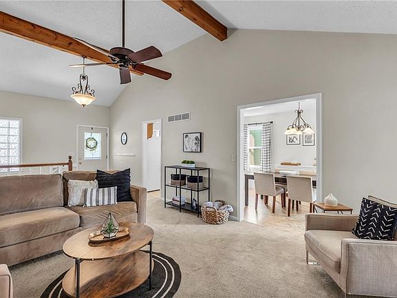 Find your Perfect Fit in this Inviting Lenexa Charmer! Situated in the sought-after Lackman Estates subdivision, this delightful 4-bedroom, 3-bathroom residence offers a blend of comfort, style and updates. Step into the spacious and sunlit living room, where vaulted ceilings and a stone fireplace set the stage for both relaxation and entertainment. Embrace the heart of the home in the country kitchen. Warm, honey-toned cabinetry pairs beautifully with white appliances and the roomy dining area offers a view to the backyard. The primary bedroom serves as a serene retreat with ample natural light and an en-suite bath. Two additional bedrooms and a full bath complete the main floor. The versatile lower level includes a spacious family room or optional 4th bedroom, a full bath, and a functional mudroom, and laundry area. The fenced backyard beckons you outside and offers a patio for al fresco dining, mature shade trees, and room to play. Additional highlights include: in-ground sprinkler system * an oversized 2-car garage * both refrigerators, freezer, washer, dryer, playset, video door bell convey with the home * attic fan * gutter covers * no HOA * Shawnee Mission Schools. Located near parks, including Sar-Ko-Par Trails Park, this home is ready to move in and enjoy. Discover Where Your Story Unfolds— Book a Tour Today!