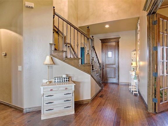 Gorgeous home on almost 2.5 acres in Choctaw.Close to Tinker and minutes away from I40 and I240.Custom designed home with a great floorplan.Large open home that boasts 4 bed, 3.5 bath, oversized 3 car garage, 3 living areas, 2 are downstairs, one is upstairs, mud room, laundry room with really nice cabinetry. This home even has a laundry chute! Open living area with a gas fireplace and an amazing Kitchen!Great island,stainless steel appliances, granite countertops. Wonderful use of counter space. Nice office,oversized storm shelter. Each of the guest bedrooms has a bonus room. Really smart layout. Bedroom 1 upstairs has a secret room behind built-in bookshelf, the second bedroom has a basketball/game room,Bedroom 3 has a neat play area.Large garage to accommodate large SUVS and trucks, surveillance cameras,Inground pool (16x32), concrete pad for building/shop (30x60),3 walk-in attics Surround sound speakers installed in front living ,Large storage space under stairs. Great custom home!