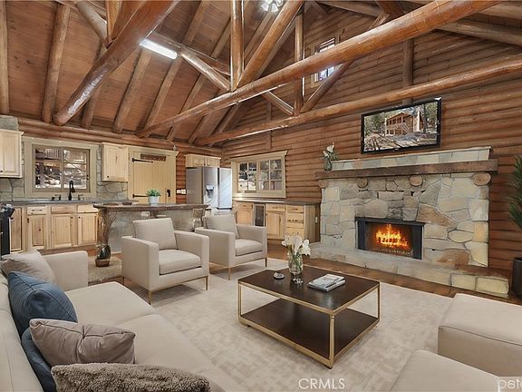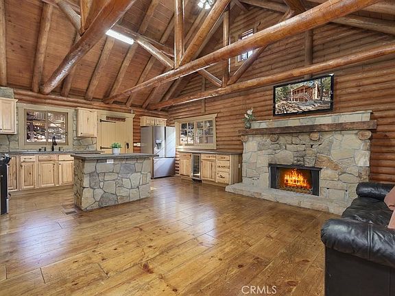 Indulge in the splendor of your stunning mountain lodge nestled in the serene community of Pine Mountain Club only 90-mins from Los Angeles and Ventura, CA! This custom log cabin, boasting 2 bedrooms, 1 bathroom, and a spacious loft that can easily serve as a third bedroom, invites you into a world of rustic elegance. With a total of 1,263 sq ft, this home offers the perfect blend of modern convenience and mountain charm. As you step inside, you'll be greeted by vaulted ceilings adorned with gleaming log wood beams, creating an inviting atmosphere that exudes warmth and character. The open-concept kitchen and living room provide a seamless flow for both everyday living and entertaining. The kitchen is a chef's delight, featuring remodeled cabinetry, stone countertops, stainless steel appliances, including a dedicated wine or beverage refrigerator, and a striking hammered copper sink. The living room showcases beautiful stone work walls, complementing the grand stone fireplace with mantel, perfect for cozying up on chilly evenings and holiday celebrations. Venture upstairs via the one-of-a-kind, hand-crafted wooden staircase, and you'll find a spacious loft that doubles as a third bedroom and home office or family room, offering versatility and functionality to suit your lifestyle. Outside, the 10,841 sq ft (0.24 acres) lot offers a covered front porch and shaded backyard, embraced by a majestic mature oak tree, creating an idyllic setting for outdoor leisure and entertainment. The expansive driveway provides ample parking, including space for RV parking, catering to your needs for convenience and flexibility. In the Pine Mountain Club community, a wealth of amenities awaits, including a prestigious golf course, tennis courts, inviting swimming pool/spa, and a welcoming clubhouse. PMC Village offers access to local shops, dining, and community events, enriching your mountain living experience. With forced air heating, air conditioning, and large ceiling fans ensuring year-round comfort, this turn-key log cabin is ready to fulfill your dreams of mountain living. If you appreciate the timeless appeal of authentic log cabins, don't miss the opportunity to make this your own slice of paradise!