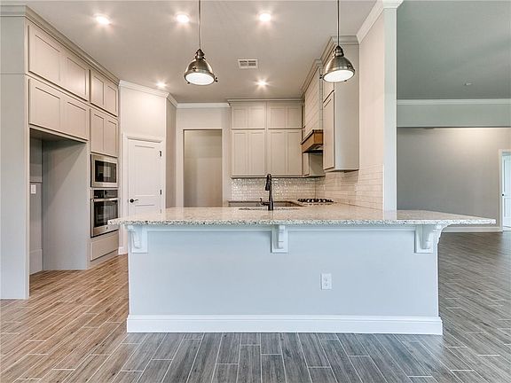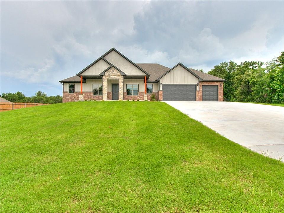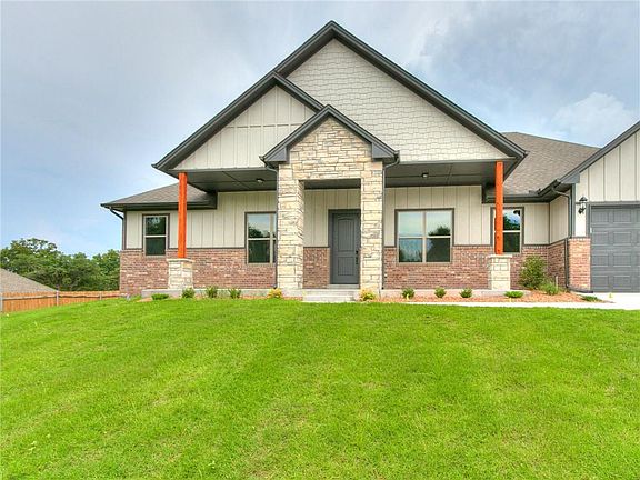 Welcome to the Bedford floor plan situated on .75 shop-approved acres! Enter to find a dining room that leads you into an open-concept living room with a cozy corner fireplace. The gourmet kitchen offers beautiful cabinetry, granite countertops, a breakfast bar, and a well-lit breakfast area and has access to the covered patio. A private hallway leads the way to the master suite, hosting high ceilings and a relaxing master bathroom with dual-sink vanity, soaking tub, separate shower, private toilet area, and huge walk-in closet. The 3 main bedrooms have their own private hallway and a shared bathroom. Additional highlights include a spacious laundry room and a half bathroom. With over 2,500+ square feet of spacious living, our beautiful 4 bedroom, 2.5 bathroom Bedford designer home is the perfect luxury home. Close to Tinker AFB! Move-In ready! Move-In Ready!