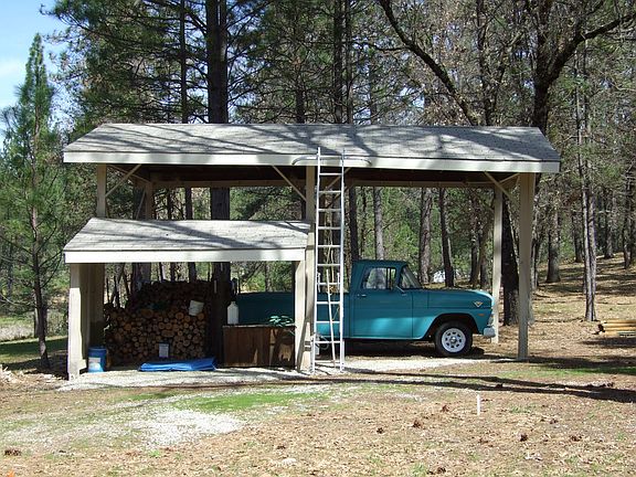 Attached two car garage. Detached shop / garage with bath. Covered RV shed with water and electricity. Water system with two wells and 7000 gal of in-ground storage. Cleared of all brush with tall fir, and black oak. On private road, near Wolf creek. Boutique vineyards on adjacent properties. Partial perimeter fence.