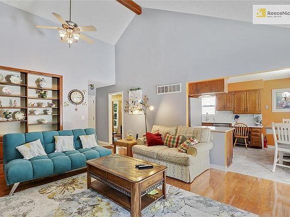 Many updates in this Fox Ridge raised ranch! Quartz countertops, glass tile backsplash and stainless appliances. Newer flooring in the first floor. Updated bathrooms. Lots of fresh paint. Large yard with the privacy of being at the end of a dead end street. Generous living space on the first floor and walk out lower level. Newer large Tuff Shed stays. Inspected with repairs made. Close to shopping, restaurants, movie theatre etc, all located on 119th street and I435 area.