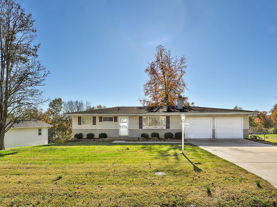 Charming Ranch style home on a dead end street in a great location off of Hwy 141! Original owner that took great care of it since it was built in 1960! 3 bedrooms (two on the main level and one in the basement), 2 full baths & 2 car garage. Step into this open floor plan offering a nice size family room w/a gas fireplace. Huge kitchen w/30" flat panel cabinets, gas cook top & built-in oven. Separate Dining rm that could be converted back to a 3rd bedroom. Large partially fenced yard w/a nice size deck and large shed. Both bedrooms offer hardwood floors & ceiling fans. Full Walk-out Finished basement w/a wood burning stove, bedroom, rec room, full bath, old cistern offering great storage. Seller converted to public water in 1969. HVAC and Water Heater approx 8 years old. Roof approx 7 years old. Deck resealed. Newer Anderson windows. Newer electrical panel. This home is in great shape! Just needs cosmetic touches! A great opportunity to make it your own! Seller is selling as-is.