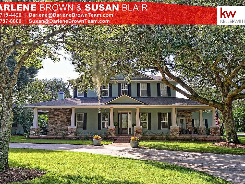 Stunning custom built home on over 1 acre crafted to the finest architectural standards and including extensive crown moldings & trims with tray and coffered ceilings. New stone work on the front of the home and columns. Dramatic entrance includes a sweeping staircase and 20' ceilings. Brazilian cherry hardwood floors throughout the foyer, dining rm, family rm, office and master bedroom. Oversized family room has a fireplace and overlooks large covered porch and screen enclosed pool. Master retreat on the first floor has a lighted tray ceiling, fireplace and separate office area. Dual Master closets w/ California Closets. Master bath has a claw foot tub, dual sinks and separate walk in shower. The kitchen is a chef's dream w/ brick floors, 42 inch cabinets, gas stove and large center island w/ granite that is perfect for food prep and bar stools. Upstairs are 3 large bedrooms and a loft. One of the bedrooms has a private bath and 2 share a Jack and Jill bath. Loft area is perfect for computer space, sitting area or TV space. The covered patio has tongue in groove ceiling and new concrete decking. Patio and saline pool and spa are sporting brand new cool decking. 30 X 40 foot full barn has concrete floor and power. Oversized sliding door is perfect for parking RV or boat and still leaves room for a large workshop. The entire yard has aluminum fencing & automatic privacy gate and pillars. This home is a true gem located in the country but close to Oviedo w/shopping and easy access to 417 for any commute.