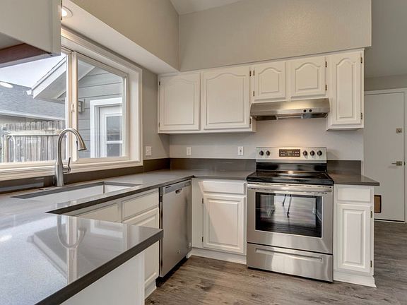 Welcome home to this beautiful single level 3 bed 2 bath in Neighborhood at the end of the cul de sac! This home is move in ready, it features newer flooring, updated countertops, and double sinks in the bathroom! Large fenced yard offers great privacy. Schedule your private showing today All appliances included except washer and drier Non smoking inside the house No pets