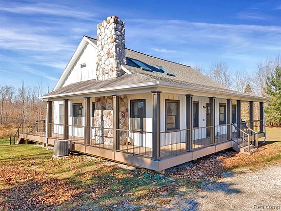 Everything is new in this beautiful home sitting on 5 quiet acres. Kitchen, floors, ceramic baths, hickory staircase, furnace and a/c, water softener. All completed within the last 12 mos. Main floor kitchen has direct access to the new wrap around maintenance free composite deck and opens to the great room with 2 story stone fireplace. The 2nd kitchen in the walk out LL adjoins large family room, weight room with padded flooring (or 4th bedroom) and a full bath. Primary bedroom and bath are a spa like retreat. Gorgeous throughout. Take a tour as pictures don't do this one justice.