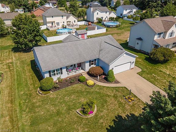 Welcome home to 1541 Cornerstone Ave SW Hartville. This split ranch has much to offer! Upon arrival you will be greeted by the cozy front porch, perfect for relaxing. Entering into the home you will be pleased with an open floor plan. Great room with gas fireplace adjoins the eat-in-kitchen which is perfect for entertainment! Tons of counter-space, cabinetry and a built-in desk feature. Dining area is located right off the kitchen leading to the four season sun-room. Sun-room offers abundant natural lighting and overlooks the well manicured backyard. Two bedrooms on left wing of the home share a full bath. Both are generous in size, great closet space and have ceiling fans. Hallway leading to right wing of the house include first floor laundry and 1/2 bath combined. Master-suite is plentiful including large master bathroom, his-her sinks, soaker tub, free standing shower and two walk-in closets. Basement space is enormous, offering office space and potential for much more. Exterior features include deck off the sun-room and storage shed. Newer frig and dishwasher (2019). New carpet in great room, dining area & sun-room (2020). This home is truly a find! Lake High School, Middle School, Lake YMCA and Library are w/in walking distance. Call/text for your private showing today!