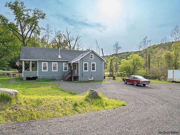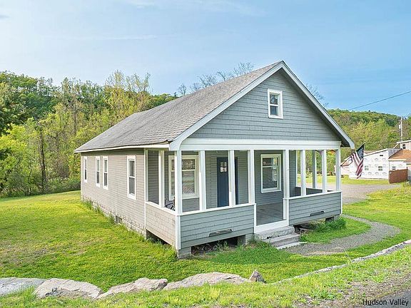 1940’s Cottage style home – updated, quaint and charming, great light and 9-foot ceilings really enhance the space, beautiful front porch and rear deck overlooking the yard and woods-sip on some coffee and enjoy the views of the pond and watch the swans swim by in the distance. Two bedrooms and one full bath with stackable washer and dryer add to the convenience of one level living. Easy flow and open concept. Plenty of parking- and property can lend itself to residential and mixed use- great layout and easy living comes to mind, close to the original old canal and lock system – with the marina, country deli and seasonal ice cream parlor just a stone’s throw away! Eddyville is a cute hamlet near the Rondout area of Kingston and the quaint town of Rosendale.