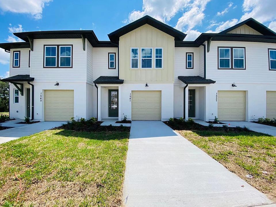 Welcome to this BRAND NEW HOME The Enclaves at Festival! Gorgeous brand new town-homes located in the highly desirable, Champions Gate area. This beautiful home has a sunny bright, open kitchen with plenty of upgrades such as beautiful 42 inch white cabinets, all stainless steel Whirlpool appliances including cook range, dishwasher, and microwave. Enormous island with Quartz counter perfect for gatherings that is open to the great room and dining area. Main living space on first floor features ceramic tile flooring and bedrooms with upgraded Shaw stain resistant carpet for comfort. Enjoy the resort style amenities with a swim in the beach walk-in community pool, kids' water park, fitness center, 18 hole miniature golf, and beach volleyball court. This home is conveniently located to shopping, grocery stores, Posner Park, Champions Gate Village and Walt Disney World. The time is now to get in on this!