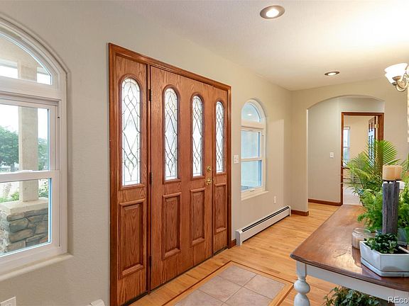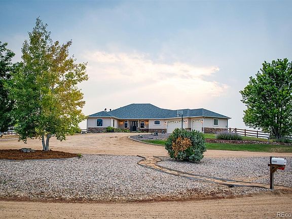 Gorgeous meticulously cared for, custom built ranch affording spectacular views of Longs Peak and the Rockies. Professionally designed landscaping. Covered deck and patio with stunning panoramic views. Over 500 SF trex deck & patio with firepit and hot tub. Kitchen has all the extras, Alder cabinets, slab granite countertops, stainless appliances, large granite island. Main floor laundry. Finished walk out basement with wet bar, recreation room, entertainment media room with surround sound and exercise room which can be that 5th bedroom if necessary and an abundance of storage. Generous master suite has 2 walk-in closets. Lower level has 2 bedrooms and 2 bathrooms. Brand new roof and renovated bathrooms downstairs. 4+ acres, zoned horse property on a quiet cul-de-sac. 1,000 + SF Workshop or car storage with 220V. Covered recreational vehicle or boat parking. With room for horses, chickens and large garden. Enjoy the sounds of nature and stunning sunrises and sunsets in the comfort of this conveniently located home.