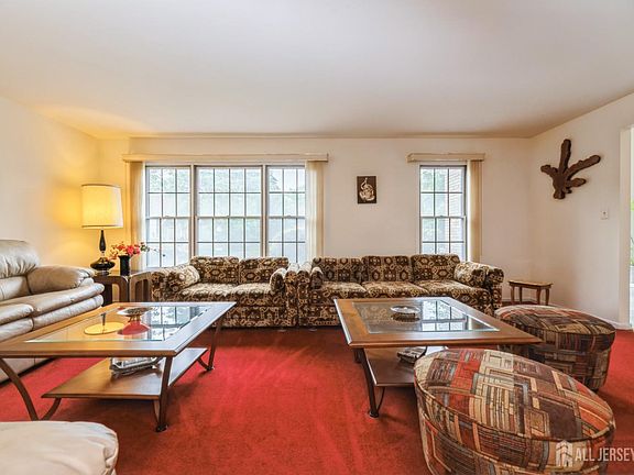 Custom-built home with views of Farrington Lake. Enter through the sun-filled two-story foyer to find the spacious living room to the right, which is open to the banquet-sized formal dining room. The eat-in kitchen features stainless steel appliances, range exhaust hood, granite counters, tiled back splash, center-island, and access to the backyard. Down the hall is the large family room with a handsome wood burning fireplace and sliding-glass doors leading to the patio and spacious backyard. Completing the first level is a bedroom, full bathroom, laundry room with utility sink, and access to the two-car garage. Take the turned staircase up to the second level where you will find a large loft with a skylight and three generously sized bedrooms. The primary bedroom suite has a large walk-in closet and private bathroom with a jetted-tub and separate stall shower. There are two additional large bedrooms on this level and the main bathroom, which is accessible from the hallway and from one the bedrooms. The full finished basement with ceramic tiled flooring offers a great space for entertaining with a large recreation room, kitchen, and full bathroom. Some amenities include two-zone heating and air conditioning. North Brunswick offers many community events, activities, and programs. The neighborhood is near Farrington Lake with easy access to major highways and NYC bus and train lines.