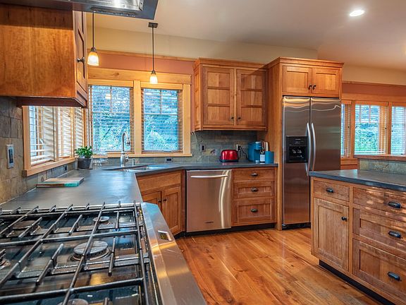 Gorgeous craftsman style bungalow on the bench in Northridge. Featuring deep cherry wood flooring, concrete countertops and top of the line appliances. This house is two story with the master bedroom and bath upstairs, along with two more bedrooms and bath. It also has a great recreation room and bath above the attached two car garage. Tons of storage, separate office and an extra fridge. A seasonal creek runs through the front of the property and a community lake is just down the street. It has a large fenced backyard with a covered patio, outdoor gas fire pit and hot tub, wonderful for entertaining and keeping the kids and pets safe. This is a family neighborhood near the bike path, Albertsons and the school, it's a fanatic place to live and make new friends The amount of months to lease is negotiable. The $5500 cleaning deposit covers pets as well. All Utilities included Require first, last and deposit