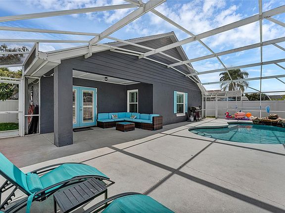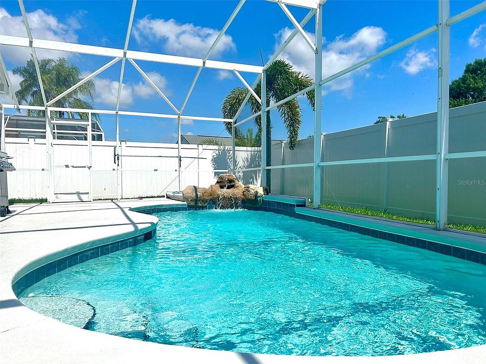 The highlight of this property is the private screened swimming pool, complete with lighting, creating the perfect spot to relax after a long day or to entertain family and friends year-round. The pool area overlooks a well-sized backyard and offers plenty of outdoor space for gatherings.