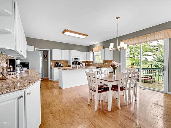 Over 4500 sq ft of living space! Come and take a look at this spacious home with room to roam! Great location backing to pond! Open floor plan with 2 story FR w/ floor to ceiling brick FP w/custom built ins looks into the huge kitchen with white cabinets with granite counters & backsplash. Lots of counter & cabinet space + a center island. Butlers pantry too! 1st floor office or play room w/full bath! French doors to primary bedroom with sitting area - great for office, nursery, TV or exercise area & 2 walk in closets with large bath that offers double sink vanity, whirlpool tub & separate shower. English basement is finished with large rec room & full bath + plenty of storage. 2 level deck to almost 1/2 acre yard. Prime location just minutes to Randall Rd., I - 90, Longmeadow Bridge and more! Don't miss out on this one!