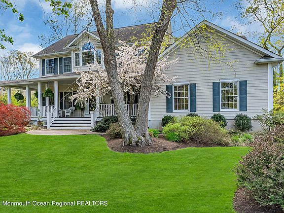 Enjoy this very well maintained 5 bedroom, 3.5 bath home, on a quiet cul de sac in the Manasquan Park section of Wall Twp. This home sits on a level, half acre, private lot. The large covered mahogany wrap around front porch, rear raised and lower patios, and in ground pool add to this homes already incredible architecture and layout. Large level driveway with two car garage. There is a beautiful master bedroom, with large updated master bathroom. Master bathroom features, radiant heated floors, double sinks, shower stall, tub and 2 walk in closets. Hardwood floors throughout the majority of the home. The finished basement with bonus room gives you space to grow and spread out! Lawn sprinklers and well are already in place. This is an incredible property.