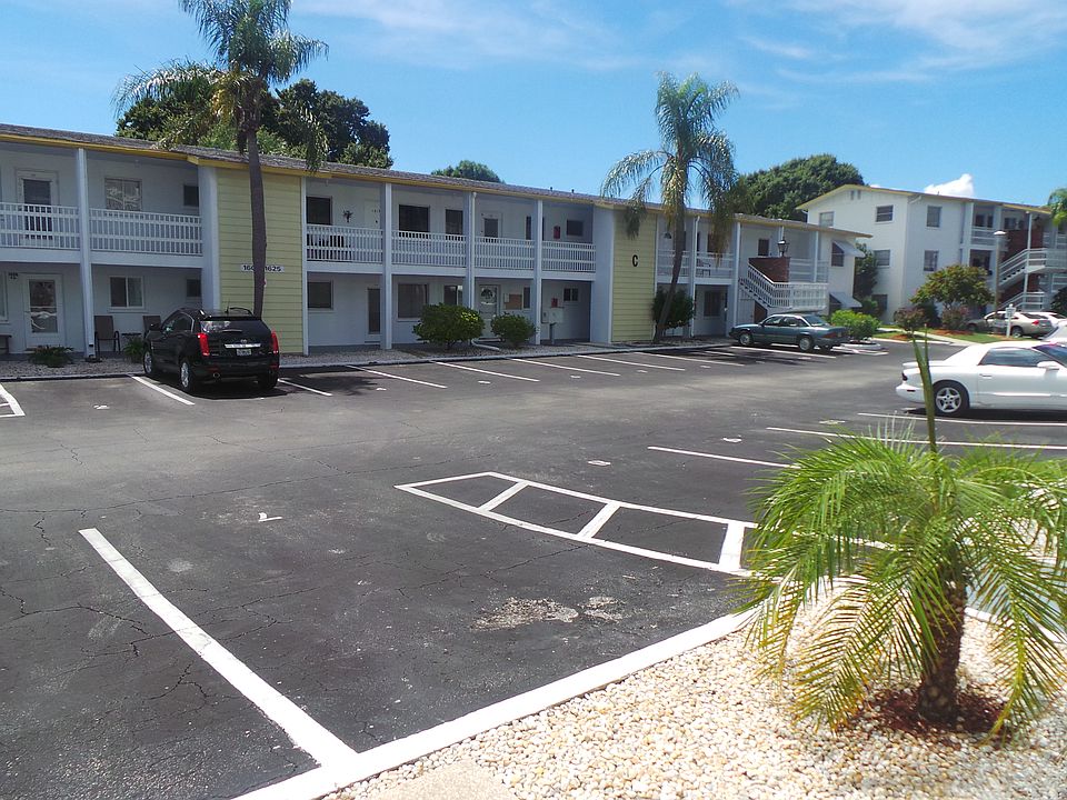 2 bedroom and 2 bathroom at the end of F-Building in Bayshore Gardens Condo Unit 1. A/C was installed in 2009, screened lanai, community pool stays a comfortable 87 degrees all winter long, activities vary throughout the year. Less than a 2/10th of a mile to great shopping like Target,TJ Max and Publix, bus lines are even closer. You'll need to make some upgrades to this one so lets get started before winter comes to the north.