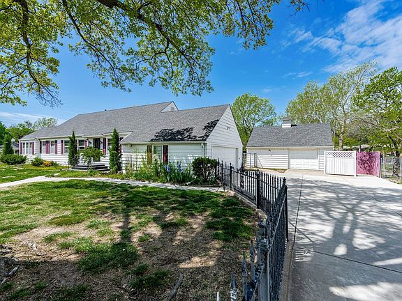This is a rare opportunity to own a beautiful home on just over 1+ acre (2 lots) in northwest Wichita! Approaching the home, you’ll appreciate the fully fenced yard with a custom metal fence, beautiful landscaping, and oversized driveway to the side entry garage and detached shop. Head inside to find real hardwood floors throughout most of the main level and plenty of timeless charm. The main living room offers a decorative fireplace and leads to the formal dining with an adjacent sunroom or office space. There are 3.5 bathrooms on the main level as well as 3 large bedrooms including the master with a walk-in closet and its own en suite full bath. The primary bath has tile floors, a jacuzzi tub, makeup vanity, and is naturally lit from 2 skylights. The kitchen comes with luxury vinyl plank floors, an eating nook, and all appliances shown to stay. There is an adjacent storage/laundry room that doubles as a full bathroom with a custom tile shower. Downstairs you’ll find a full unfinished basement offering tons of storage space and a compressor tank that is plumbed to the shop (never used). Off the back of the home is a large screened covered patio looking out to the stone picnic table and garden beds. Walk outside on the concrete paths leading to the detached shop and the powered gazebo. The shop has a concrete floor, a skylight, and 3 overhead doors (2 with automatic openers), one on the front, side, and back. Also with noting is a new 40-year roof in 2019 and 2 irrigation wells to keep things green. Don’t miss out on a great property in an amazing location. Call for a tour today!