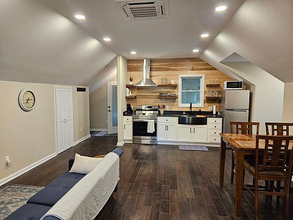 Brand new one bedroom, fully furnished apartment above a garage in beautiful Riverside. This amazing apartment features hard wood heated floors, coffee bar, outdoor patio and grill, and off-street parking. Appliances include full size fridge, oven, washer/dryer, and microwave. The apartment is located near the downtown area as well as Via Christi and Wesley hospitals. Utilities included. Fully Furnished. No smoking and no pets. Refundable security deposit due at signing. Off-Street Parking. Minimum Lease Term is 1 month. Tenant is responsible for cleaning apartment prior to lease end.