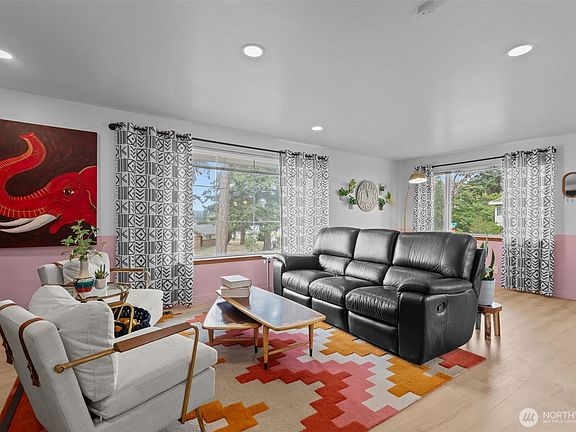 Full of mid-century charm & personality, this Oak Harbor gem is anything but ordinary! Bursting w/ color & character, it offers 3 bdrms, 1.75 baths & a layout brimming w/ options. The kitchen is a dream for cooking & connection, while sunlight pours through picture windows framing Olympic Mtn views. Cozy fireplaces invite you to linger. Perfect sized bedrms are sure to please. The remodeled lower level, now a vibrant salon, is ideal for home business, rental/investment, a perfect roommate layout, or extra living area. Updates incl new LVP floors, fresh paint, updated plumbing & electrical & more, the list is long! Roomy corner lot near schools, shops, dining, NAS Whidbey & the waterfront, this home blends fun, function & irresistible charm.