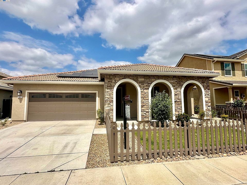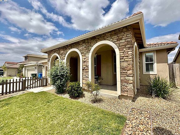 Absolutely stunning single story home, built in 2021, in one of Manteca's most sought-after neighborhoods! The beautiful architecture, front porch and landscaping give this home amazing curb appeal. As you enter, you will find gorgeous luxury vinyl plank floors throughout that lead you into a huge open concept family entertainment area. The chef's dream kitchen includes magnificent counter tops, stainless steel appliances and extra large pantry. An additional open pantry can be used as office space. The impressive island gives you plenty of space to entertain and serve family and friends. Relax in your spacious primary retreat which has a spa-like modern bathroom with beautiful walk-in shower. For privacy, the three additional bedrooms are located on the opposite side of this well-designed floorplan. Got pups? Bathing your pooches is so convenient in their very own bathing station located in the laundry room. Enjoy time in your backyard, which includes a large patio and lovely low maintenance landscaping. 3-car garage does have the ability, per builder, to convert into 5th bedroom if needed. Conveniently located near restaurants, shopping, parks and entertainment. Move right into your dream home and enjoy!