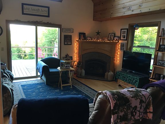 Beautiful 3 bedroom, 2 full bath Cape with large windows on a very private driveway sitting on 77 acres. Gas corner fireplace, tongue and groove vaulted ceiling, open concept living and dining room with second floor balcony. Master suite with private bath, jetted tub and outdoor deck off the bedroom. Bamboo hardwood flooring. Oak kitchen cabinets with island seating. Full walkout basement with radiant floor heating and partially finished man cave. Detached 3 bay garage. Large lawn area. Less than a mile from Interstate 91. Thirty minutes from Hanover/Lebanon, NH and Barre/Montpelier,VT and I-89.
