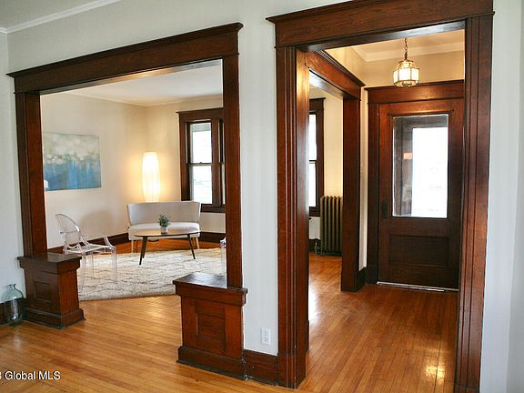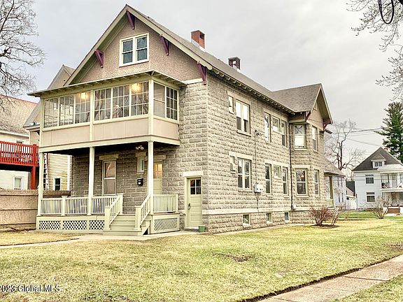 One of the most beautiful multi-family mansions in Schenectady that has retained its original charm and dignity while benefitting from thoughtful updates and upgrades throughout. Currently configured as a 3 family or would also be well-suited to turn back into a grand 2 family. This Arts and Crafts style fortress is built out of granite w/ majestic tall ceilings, hardwood flooring, 2 fireplaces w/ original surrounds and other exquisite trim details. The entire 1FL is a sprawling 3BR apt of over 1650 sq ft w/ front and rear covered porches. The 2FL has a lovely 2BR apt in front w/ private porch and 1BR apt in rear w/ private enclosed porch. Each apt has separate utilities. Located between Union College and Upper Union St., this is a one-of-a-kind treasure. LA has ownership interest.