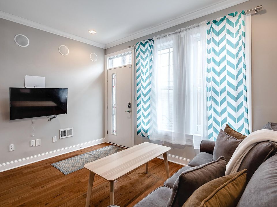Found on a quaint residential street and just steps away from Ralph Brooks Park and Community Garden, enter and discover desirable details throughout, including hardwood flooring, upgraded bullnose corner walls, recessed lighting, large windows and a newly added sliding glass door feature in the kitchen for plenty of natural light. The home features a large living room with built in speakers and an open dining room showcasing any furniture arrangement to suit your taste. Continue into the newly designed kitchen, complete with granite counters, stainless steel appliances, tiled backsplash and three sets of kitchen cabinets for plenty of preparation space with access through sliding doors to a concrete rear yard, perfect for lounging on sunny days! The second floor features two light filled bedrooms with ample closet space, and a full tiled bath with tub and shower. The third floor reveals a fabulous master suite with walk in closet, trey ceiling with ambiance rope lighting, a full bath with stall shower with a frameless glass enclosure. Be sure to stop by the 3rd floor's wet bar before heading up to the full sized roof deck with built in speakers and tons of built in lighting, just the spot to sit back and admire the fantastic view. Still not enough room for you? Check out the full finished basement, with full tiled bath for your comfort & convenience. Easy access to center city and Grays Ferry Bridge to University city. Also close to public transportation and I-76.