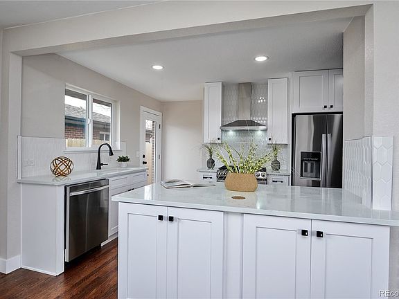 Completely remodeled, brick mid-century modern ranch in Virginia Village. Main floor features include an open floor plan great for entertaining, hardwood floors throughout, both a living room and a family room plus three bedrooms including a primary bedroom with private en suite bathroom. The very spacious newly finished basement features another primary bedroom with private en suite bathroom, bonus space, family room, half bath, laundry and storage room. The backyard has a patio and is fenced in. Easy access to so much! 8 minutes to Cherry Creek and Wash Park, Less than 15 min to downtown, and right around the corner from I-25, Great location!