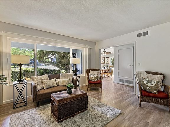 Welcome Home to this very charming main floor condo in the heart of Fullerton. This home features 2 very spacious bedrooms and bathrooms. Large windows through out bring in plenty of natural sunlight and provide a wonderful view of greenery and a swimming pool. New flooring and paint makes the home even brighter. The Master Bedroom has a walk in closet along with an additional closet, plus an ensuite bathroom. The Living room has an inviting fireplace and the dining room is perfect for entertaining. Relax with a cup of coffee on the cozy patio as you enjoy the quiet and tranquil surroundings. This home comes with 1 garage space with ample storage and there is additional street parking available. Meredith Manor is a well maintained community and is freshly painted on the exterior with beautiful pools, convenient laundry facilities, and a security camera system throughout the premises. Walk to an abundance of restaurants and shopping in the heart of downtown Fullerton. Easy access to the 91 freeway less than .5 miles away and the close by Fullerton Transportation center.
