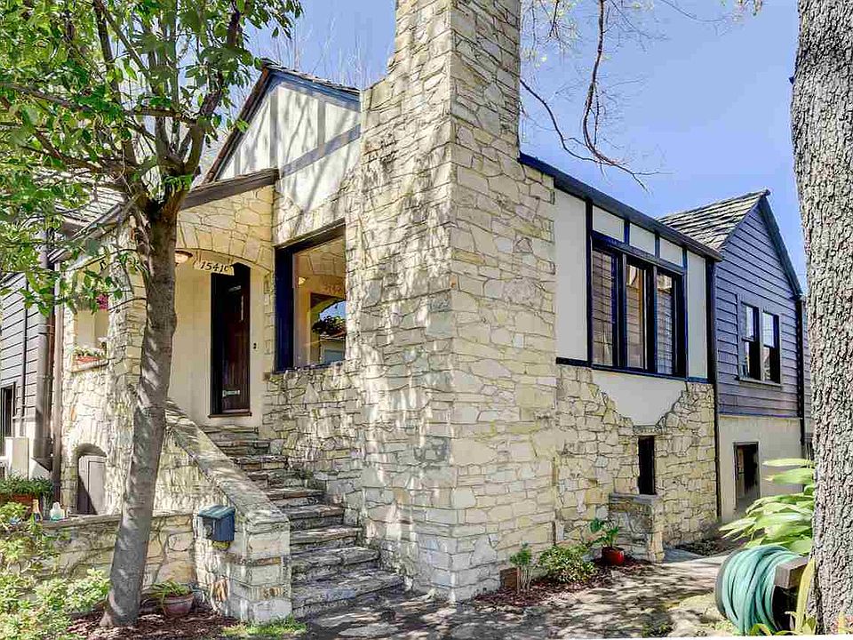 Stonehenge is a storybook cottage village built nearly a century ago. Through the arch is a garden courtyard filled with flowering plants, stone benches, bridge, waterfall, pond and large circular stone fountain. Surrounding this magical garden paradise are half-timbered two-story homes trimmed in stone and capped with heavy shakes. Next to the fountain is the cottage at 1541 C reached by a stone stairway. Along side is a romantic patio area overlooking the fountain. The open-ceiling living room, stone fireplace and big windows give it a grand feel. Cream-colored walls are accented with dark brown trim, black metal light fixtures and original oak floors. The main level includes 2 bedrooms with ample closets and a full bath. Off the living room is a sunny dining room and newly remodeled bright kitchen with quartz counter tops, wavy white tiles and stainless steel appliances. Downstairs is a laundry room, large refurbished basement, renovated full bath & garage with electric charger.