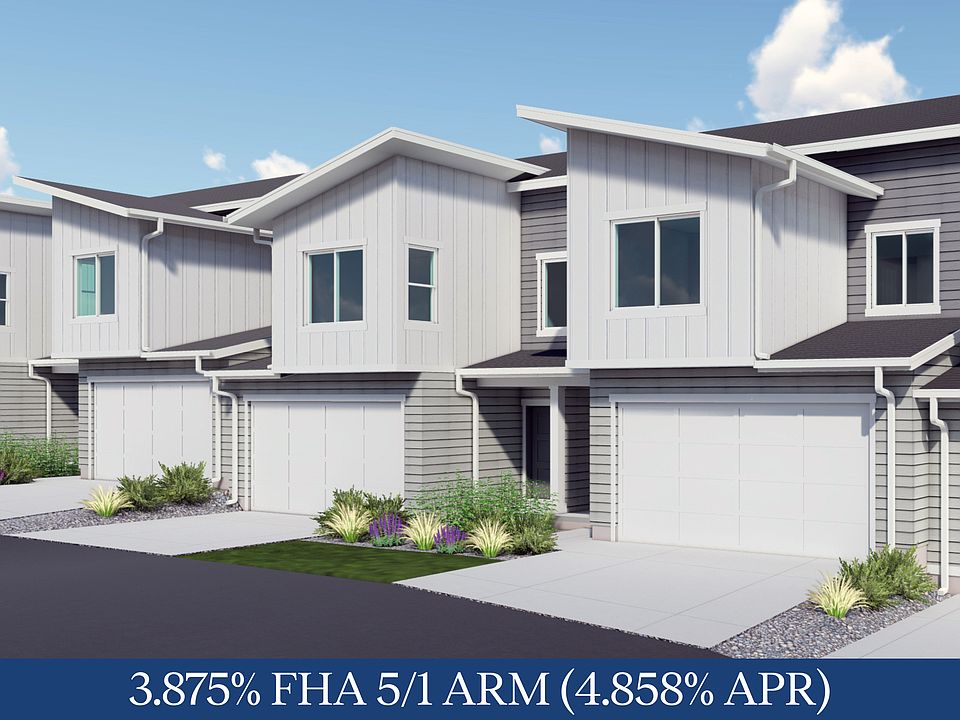 The Valley Canyon Series - 1450 - Res M. Offering rates as low as 3.875% FHA 5/1 ARM (4.858% APR) when financing through Lennar Mortgage! Estimated completion in November. This home offers 3 bedrooms, 2.5 bathrooms, an attached 2-car garage and a full unfinished WALKOUT basement. On the main floor, a spacious kitchen offers white craftsman-style cabinets, Linen Cream countertops, and stainless steel appliances including the refrigerator! Upstairs is the owner's suite with owner's suite bathroom, laundry area, two additional bedrooms, and a full secondary bathroom. Square footage figures are provided as a courtesy estimate only and were obtained from builder. Buyer is advised to obtain an independent measurement. Interior photos are of same style of home, but not the actual home. Rendering is for illustrative purposes only.