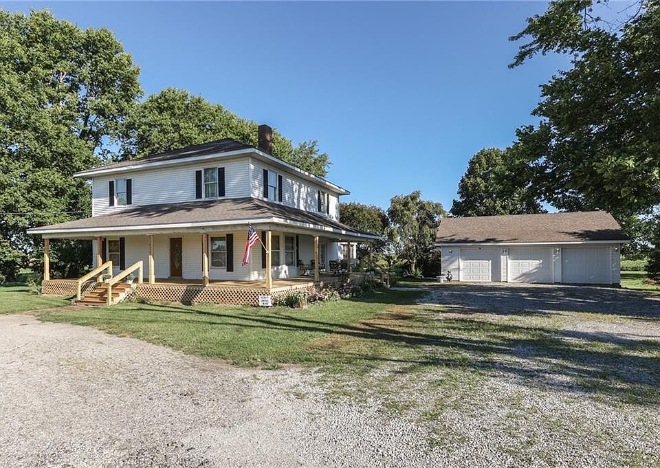 All the charm of country living in this 1900 Farmhouse. Home features 4 bedrooms w/ large walk-in closets, 2 full bathrooms, huge kitchen, double staircase leading to the upper level and basement, original hardwoods & trim throughout, new wrap around porch & oversized 3 car garage with tons of storage! Motivated Sellers!!
