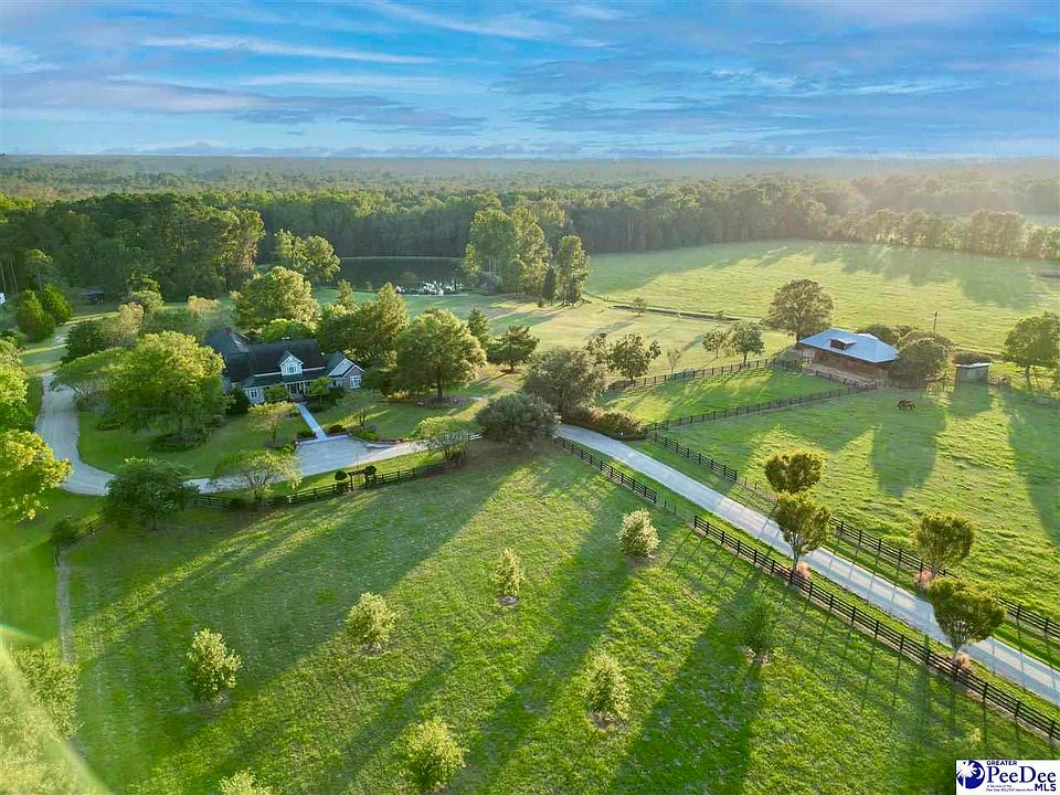 Discover an unparalleled lifestyle at this breathtaking 87-acre estate, where elegance meets outdoor adventure. As you travel down the long, scenic drive, you’ll be welcomed by a stately custom-built home that exemplifies luxury living. This exquisite property features a well-appointed horse barn with stables and fenced pastures, perfect for equestrian enthusiasts. Immerse yourself in the beauty of nature, whether you prefer hunting, fishing, horseback riding, or simply enjoying the tranquil surroundings. As you enter the home, you will find a kitchen that is a chef’s dream, and an architectural delight. The kitchen boasts impeccable features such as a Wolf 6-burner gas range, Sub-Zero refrigerator, Hoshizaki ice maker, and U-Line wine chiller, as well as additional culinary accents. Architecturally, the kitchen exudes coffered ceiling with beadboard, a custom stained-glass transom, and abundant quartzite counters. The great room is a showstopper, featuring a zebra wood mantle fireplace, heart pine beams, custom ironwork, and a striking beveled glass half-moon window, all designed to create an inviting atmosphere with abundant natural light. As you retreat to the primary bedroom, adorned with antique stained-glass doors and windows, you will experience tranquility and rest in abundance. The primary bedroom leads to a luxurious en-suite bathroom that captivates you in luxury. The second-floor living area offers spacious bedrooms and a multi-functional bathroom, ideal for guests or family. Natural light floods every corner of this home through expansive windows adorned with plantation shutters and custom blinds. Transition seamlessly from the great room through expansive sliding glass doors to the wrap-around screened porch. This serene space is perfectly positioned to take in stunning sunsets over the pond and lush grounds. Step outside onto a meticulously designed patio and outdoor kitchen, featuring a Newair beverage chiller, Tappen undercounter microwave, Kohler farmhouse sink, and custom heart pine cabinets. Don’t miss the captivating Lyman Whitaker copper and steel wind sculpture that adds an artistic touch to the outdoor space. For entertaining, the removable carport tent walls and custom iron railings and gates—crafted by English Cooper of the Iron Gallery—offer both functionality and charm. The home is equipped with a Bosch 2.5-ton 18.5 SEER heat pump (2023) and two Carrier units (2014), ensuring your comfort year-round. Two large hot water heaters provide ample supply for the estate. This property is a true masterpiece, meticulously designed and beautifully maintained. Experience the splendor for yourself—call today to schedule your personal tour!