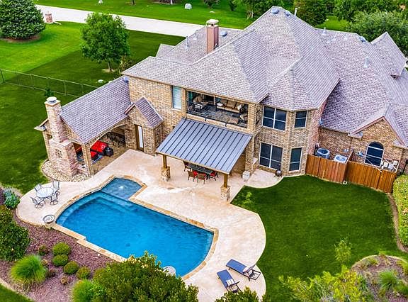 Move-in Ready Custom Pool Home on 1.36 Acres in Prestigious Gentle Creek Estates. This 5215 sqft 4 bdrm, 3.2 bath home features upgrades throughout. Hwd floors, gourmet kitchen, private master retreat, plantation shutters, huge secondary bedrms, handsome study, media rm down, private wine storage & game room with a walk-out bacony. Breathtaking backyard oasis with lush landscaping. Enjoy swimming in the pool, relaxing around the outdoor fireplace and listening to the water feature under extensive patios. 3 car garage & fully fenced. Private & Prosper ISD Walnut Grove High School