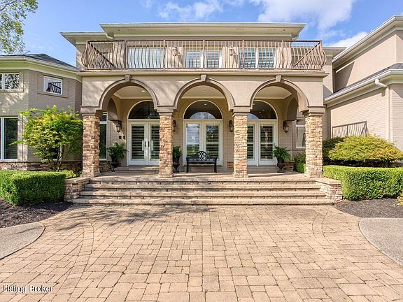 hosting family and friends. The great room, with its gas fireplace and marble surround, offers a cozy ambiance, while the handsome home office provides a quiet retreat for work or study. The large dining area is perfect for formal occasions, and the eat-in kitchen with an adjoining hearth room opens to two expansive decks, one of which is covered for year-round enjoyment. The property includes five generously sized bedrooms, including a first-floor primary suite with a luxurious ensuite full bathroom, a large walk-in closet, along with private access to the back deck. The second level features three additional bedrooms and two full bathrooms, providing ample space for family and guests. The fully finished walkout basement is an entertainer's dream, complete with a wet bar, media area, a home gym, ample storage space, and a guest bedroom with an ensuite full bathroom. This space is filled with natural light and provides a perfect transition to the exterior with a covered patio where you can relax in the shade and enjoy the sounds of nature. To complete this level, you have a dedicated pool bathroom that provides convenient access to the outdoor amenities. This extraordinary home combines luxury, comfort, and style in one of Louisville's most sought-after locations. Experience exquisite living with every convenience at your doorstep. Don't miss the opportunity to make this exceptional estate your own.
