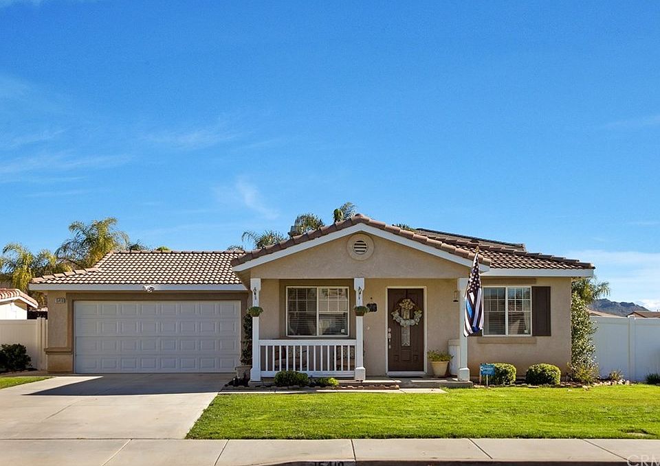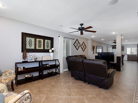 Absolutely gorgeous home! This great home features brand new granite kitchen counter tops, stainless steel sink, goose neck faucet and freshly refinished kitchen cabinets. The entire home has solid surface flooring including designer style tile throughout the main living area and master bedroom and laminate flooring in the secondary bedrooms. Many more upgrades include newer ceiling fans, newer can lighting, newer master bathroom lighting, surround sound in the family room, newer tall baseboards and that's just the inside! The back yard is an entertainers dream with new vinyl fencing, build in BBQ island with electrical, matching water feature, post lighting, dog run and storage shed. Location is ideal on this corner lot right across the street from the community park.