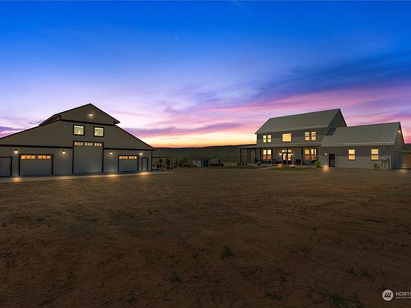 Welcome to this stunning property nestled on 20 acres of land with breathtaking views of beautiful sunsets and sunrises. This home offers privacy and the opportunity to enjoy wildlife in a tranquil setting. Step inside the house to a spacious and well-designed interior with 10-foot ceilings. Beautiful kitchen features custom cabinets, gas range & generous kitchen island, perfect for entertaining guests. The open-concept design flows seamlessly into the living area. Primary bedroom features a luxurious en-suite bathroom & walk-in closet. Three additional bedrooms upstairs. Gas fireplace in living room. Property features a heated and air conditioned shop with nearly 4000 sq ft with three bays & bathroom with the potential for living quarters.