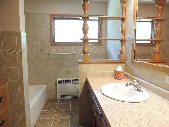 Great location! New Berlin ranch with exposed walkout lower level on a spacious half-acre lot and quiet street. This 3 bedroom, 2 bath home with stone nat. fireplace features a remodeled bath with new tile, tub, sink, counter & toilet. Hardwood floors in bedrooms, living room & dinette. Basement is ready for your rec room ideas with the newly tiled bath, updated electrical, LED can lights, & nat. fireplace. A delightful breezeway connects the 2.5 car garage to the home.